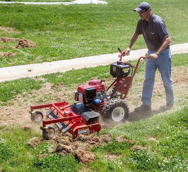 The TURF TEQ Power Rake is a valuable time-saving tool for all types of seedbed preparation, lawn renovation and raking jobs. With its compact design, the Power Rake can also go where tractor and skid steer mounted versions of this product can’t go, and can do its job without damaging healthy turf. You’ll get more work done faster and drastically increase the profitability of your business.